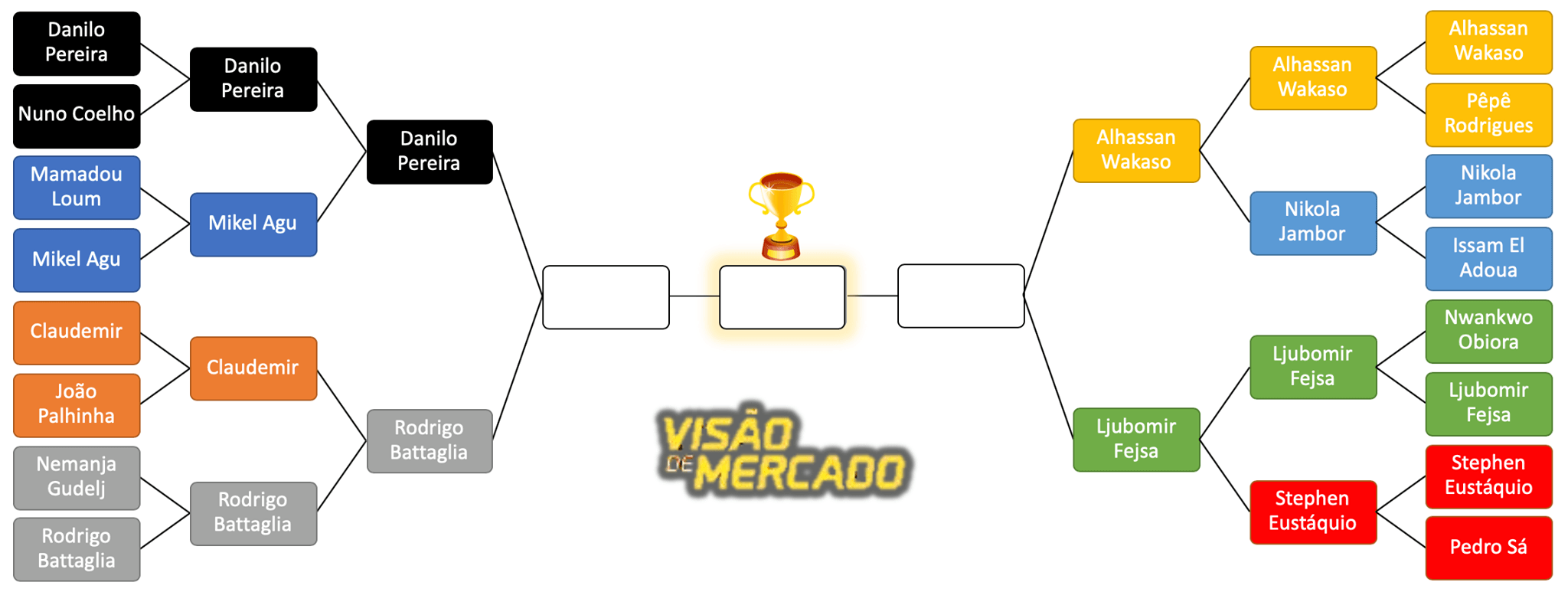Creio que a votação mostra com clareza quais são os dois melhores médios defensivos a atuar em Portugal. No final para mim o primeiro lugar ficará entregue ao Danilo Pereira. Depois de perder o William, e se me deixassem escolher, traria para o meu SCP o Anderson Esiti do Gent.