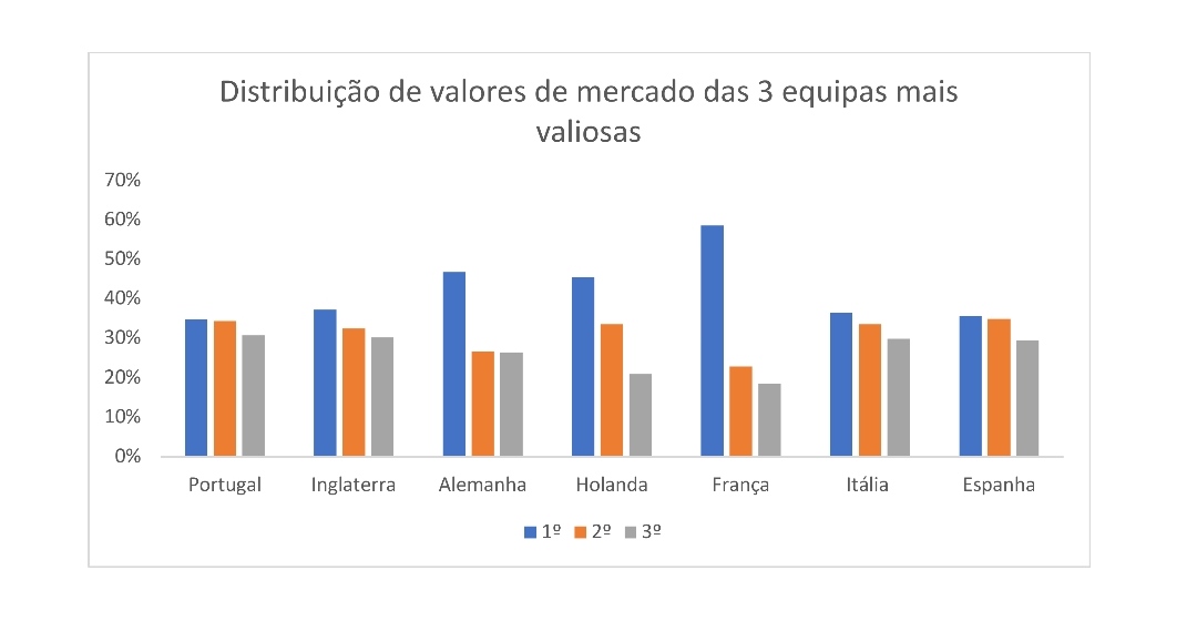 A liga Portuguesa “sofre” de uma espécie de maldição – a existência de 3 líderes. Na verdade, quando olhamos para a distribuição de valores entre as 3 principais equipas, a ligar Portuguesa é a mais equilibrada entre todas as ligas.