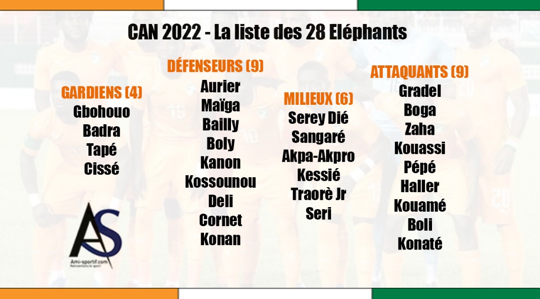 Wilfred Zaha, Sebastien Haller, Nicolas Pépé, Eric Bailly, Franck Kessié ou Serge Aurier integram a convocatória da Costa do Marfim para a CAN’2022. Willy Boly, que passou por SC Braga ou FC Porto, ean Michael Seri, ex-Paços, e Ghislain Konan, ex-Vitória SC, também estão na lista de Patrice Beaumelle. Recorde-se que os Leões Indomáveis estão no grupo da Argélia, Serra Leoa e Guiné Equatorial.