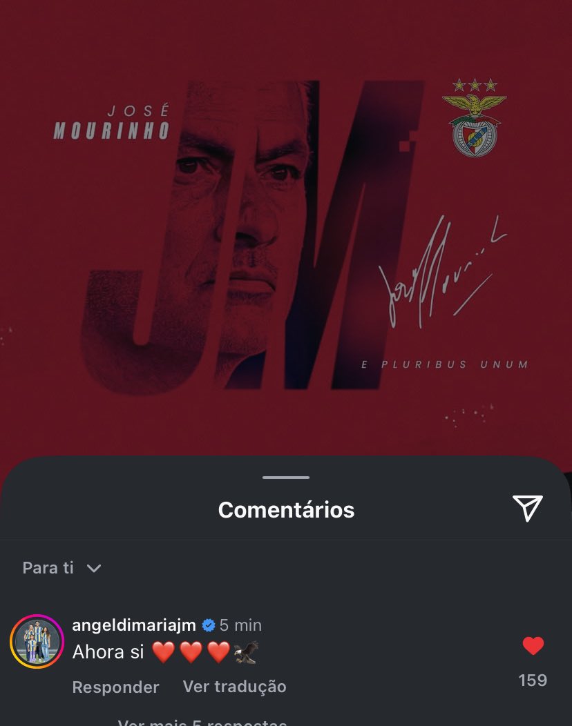 Três palavras. Três corações. Uma águia. E pronto, Di María fez mais barulho com um emoji do que muitos com conferências de imprensa. O argentino, que há pouco tempo ainda deslizava pela relva da Luz como quem dança tango em noite de gala, decidiu abrir a boca – ou melhor, os dedos – para comentar a chegada de José Mourinho ao Benfica. E não foi preciso mais nada para incendiar os salões da especulação.