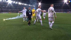 Uma tocha foi lançada para perto dos jogadores do Sporting.#DAZNChampions pic.twitter.com/6s5kfyvynP