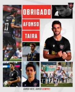 O Casa Pia anunciou a saída de Afonso Taira. O médio, de 30 anos, está em final de contrato e fica assim livre para assinar por outra equipa. Taira, que já passou pelo Sporting, Estoril ou B SAD, esta época somou 39 jogos.