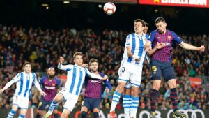 Na jornada 33 da La Liga, o Barcelona derrotou a Real Sociedad por 2-1, com golos de Lenglet, a fechar a primeira 1.ª parte, e Alba, aos 64′. Pelo meio, Juanmi fugiu à defensiva blaugrana e reduziu, mas os três pontos ficaram mesmo com os catalães. Com este triunfo, o Barça soma 77 pontos e fica a duas vitórias de garantir o título espanhol.