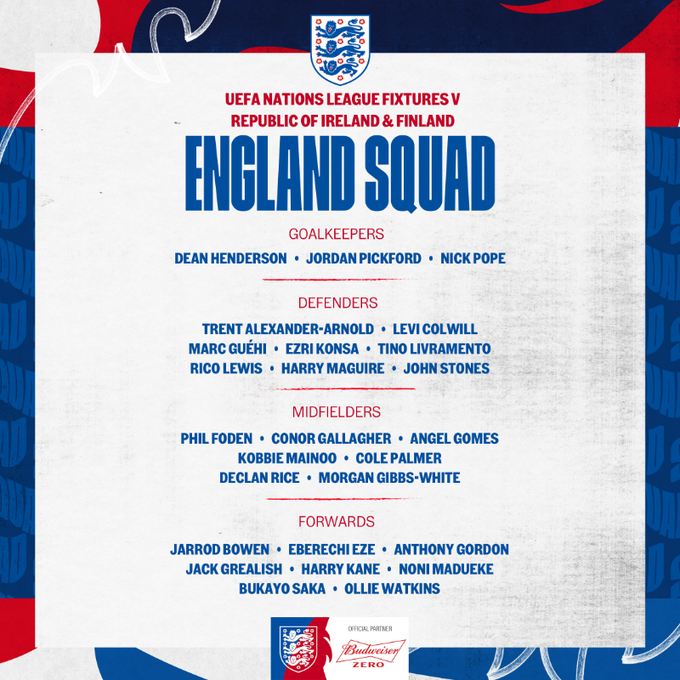 A presença Angel Gomes, filho de Gil, que foi campeão Mundial sub-20 por Portugal, é o principal destaque na convocatória de Inglaterra para os jogos contra a Rep. Irlanda e Finlândia, relativos à Liga das Nações. Além do médio do Lille, que passou pelo Boavista, destaque também para a estreia de Noni Madueke, do Chelsea. Tino Livramento e o regresso de Grealish são as outras novidades.