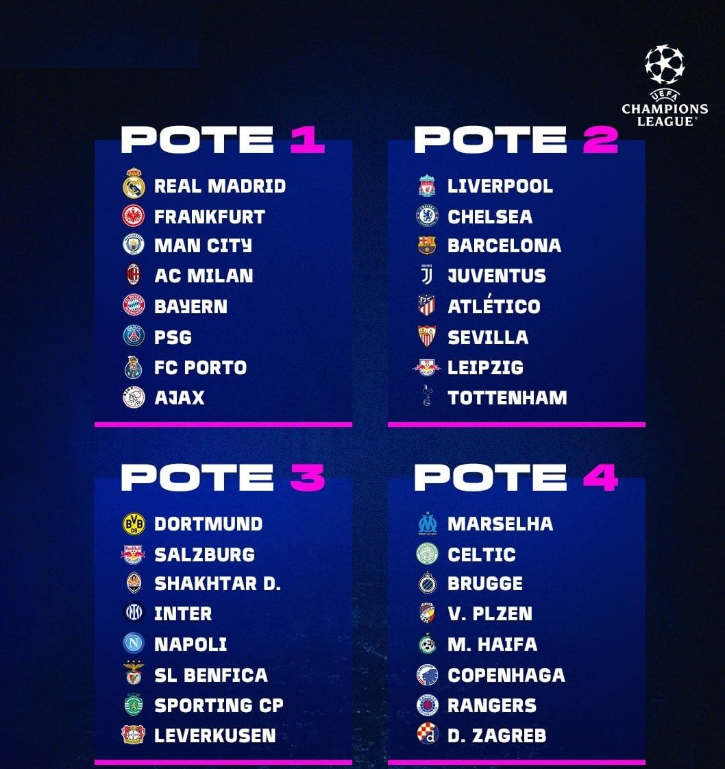 Glasgow Rangers, Copenhaga e Dínamo Zagreb completaram as três vagas que faltavam na fase de grupos da Champions. O Rangers derrotou o PSV, o Copenhaga eliminou o Trabzonspor, enquanto o Dínamo despachou o Bodø/Glimt no prolongamento. Recorde-se que o FC Porto vai estar no pote 1 do sorteio, enquanto Benfica e Sporting estão no pote 3.