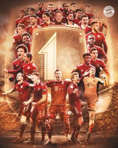 O Bayern sagrou-se campeão germânico pela 10. vez consecutiva, 32.ª no total, ao bater o Borussia Dortmund, por 3-1. Gnabry abriu o marcador no Der Klassiker aos 15′, tendo Lewandowski ampliado aos 34′. No arranque da 2.ª parte Emre Can reduziu de penálti, mas Musiala aos 83′ confirmou o título do Bayern, quando ainda faltam 3 jornadas. Recorde-se que o conjunto de Nagelsmann, que consegue o primeiro grande troféu na chega a esta fase com 75 pontos, mais 12 que o Dortmund, e 20 que o 3.º classificado, Leverkusen.