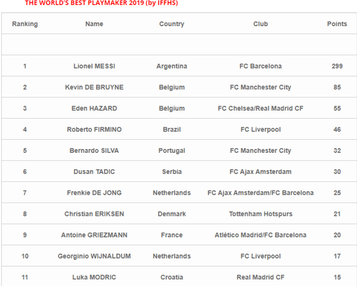 A IFFHS continua a atribuir distinções em relação aos melhores de 2019 e Bernardo Silva foi eleito o 5.º melhor playmaker do mundo. O português volta a marcar presença no topo de uma lista com os principais jogadores do futebol europeu, sendo que Messi foi o escolhido para n.º 1, à frente de De Bruyne, Hazard e Firmino.