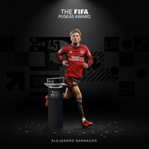 Alejandro Garnacho foi galardoado com o prémio Puskas, referente ao melhor golo do ano em 2024. O seu golo de pontapé-bicicleta, que deu o triunfo ao Man Utd frente ao Everton (1-0), tinha sido o melhor da época pela Premier League e vence também a votação para a FIFA, sucedendo a Guilherme Madruga, do Botafogo-SP.