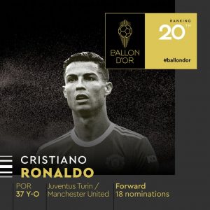 Bola de Ouro: Cristiano Ronaldo ficou em 20.º