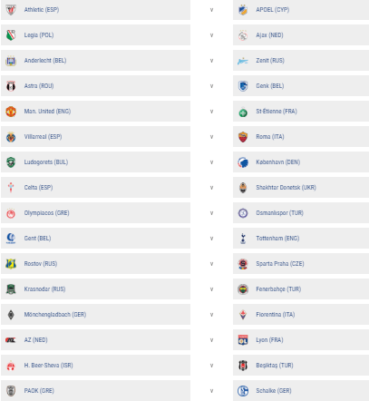Villarreal-Roma e Gladbach-Fiorentina são para mim os jogos grandes desta ronda. Pouca sorte para Paulo Sousa. Mourinho com um bom sorteio para poder ganhar a competição como ele diz que quer (Olha a champions, Mou), e o Shakhtar com boas hipóteses contra um bom adversário.