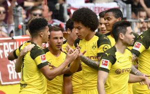 O Borussia Dortmund goleou na visita ao terreno do Friburgo por 4-0 e recolocou-se assim a 1 ponto do líder Bayern Munique, que ontem levou de vencida o Werder Bremen por 1-0, quando faltam 4 jornadas por disputar. Num encontro onde o português Raphäel Guerreiro foi titular, Jadon Sancho abriu o marcador aos 12 minutos, sendo que no segundo tempo Reus, Götze e Paco Alcácer (de penalti) completaram a goleada.