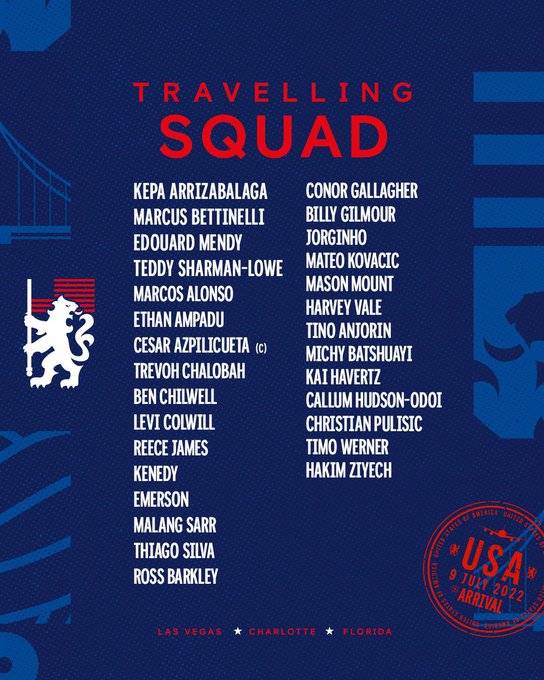Armando Broja, que tem sido apontado ao Newcastle e Southampton, ficou de fora da convocatória do Chelsea para a digressão de pré-época. Também Kanté e Loftus-Cheek são baixas na lista de Tuchel, mas por não cumprirem as regras de Covid que estão em vigor nos EUA. Já Azpilicueta e Marcos Alonso, que estão na mira do Barcelona, integram a lista de convocados.