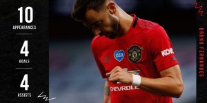 Bruno Fernandes foi eleito o MVP do Man Utd na partida com o Tottenham. O médio, internacional português, que marcou o golo do empate, continua a fazer assim o pleno, tendo sido eleito o melhor em campo nos 6 jogos que fez ao serviço dos Red Devils na Premier League.