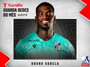 Bruno Varela foi distinguido com o prémio EuroBic Guarda-Redes do Mês da Liga Portugal Betclic, relativo a agosto. O guardiã do Vitória SC foi totalista nas três partidas em questão, tendo sofrido apenas um golo, na jornada 2, na receção ao Gil Vicente FC e somado um total de 10 defesas. Números que lhe valeram 21,43% dos votos dos treinadores principais da competição, batendo a concorrência de João Gonçalves (Boavista FC), com 16,67%, e de Luiz Júnior (FC Famalicão), que recolheu 14,29% das preferências.