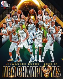 Os Bucks sagraram-se campeões da NBA ao baterem os Suns por 105-98, no sexto jogo da final. Milwaukee que tinha sido campeão em 1971 e ‘vice’ em 1974, somou o 4.º triunfo seguido nesta final, depois das duas derrotas iniciais em Phoenix. Giannis fez a diferença com 50 pontos, 14 ressaltos e 5 blocos (desde 1974 que ninguém tinha estes números numa final) e sem surpresa foi eleito o MVP das finais. Quanto ao encontro, a turma da casa fechou o 1.º período a vencer por 13, mas os Suns deram a volta com um 31-13 no 2.º e foram para o intervalo a liderar por 5. A 2.ª parte foi mais equilibrada, no entanto Giannis apontou 20 pontos no 3.º período e mais 13 no 4.º e desequilibrou a balança. Middleton chegou aos 15. Holiday não passou dos 12, mas somou 11 assistências e 9 ressaltos, já Portis deu um grande contributo vindo do banco com 16 pontos. Nos Suns, Chris Paul até fez o seu 2.º melhor jogo nestas finais, com 26 pontos, contudo Booker não passou dos 19 e Ayton só chegou aos 12.
