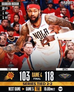 Outra nota, e talvez a mais importante, foi a defesa incrível de Alvarado e Herb Jones. Foi uma lição de defesa e, sendo eu uma pessoa que adora a vertente defensiva, foi um regalo ver a defesa old school desde o a àrea dos Suns até a dos Pelicans.