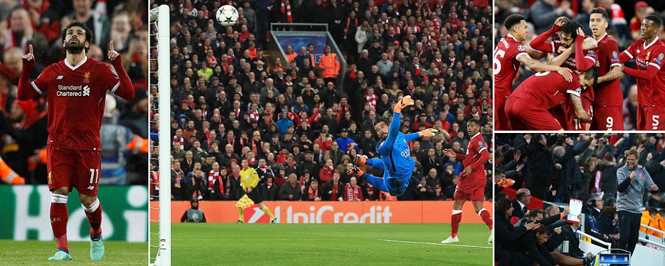 AS Roma Liga dos Campeões Liverpool Jogo de loucos em Anfield! Liverpool esmagou durante uma hora, mas Roma ainda acredita; Salah, versão Bola de Ouro, bisou nos golos e assistências; Firmino também esteve em 4 golos; Mané perdulário impediu resultado ainda mais expressivo; Dzeko e Perotti deram vida aos romanosAbril 24, 201877Comentários