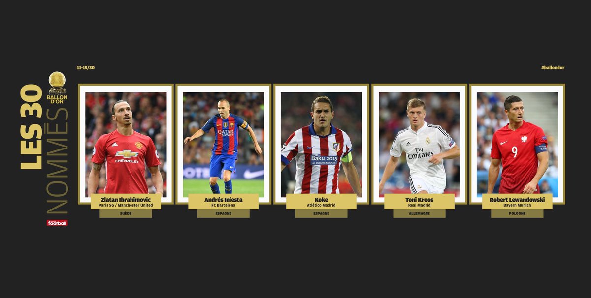 Bola de Ouro VM-Extra Ibrahimovic, Iniesta, Koke, Kroos e Lewandowski também estão nos 30 nomeados para a Bola de OuroOutubro 24, 201611Comentários