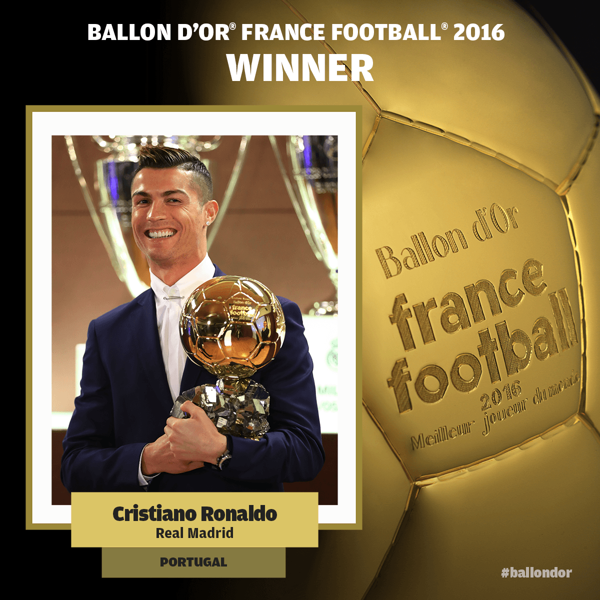 Bola de Ouro Cristiano Ronaldo arrecada a quarta Bola de Ouro; Português venceu o prémio pela 3.ª vez nos últimos 4 anosDezembro 12, 2016229Comentários