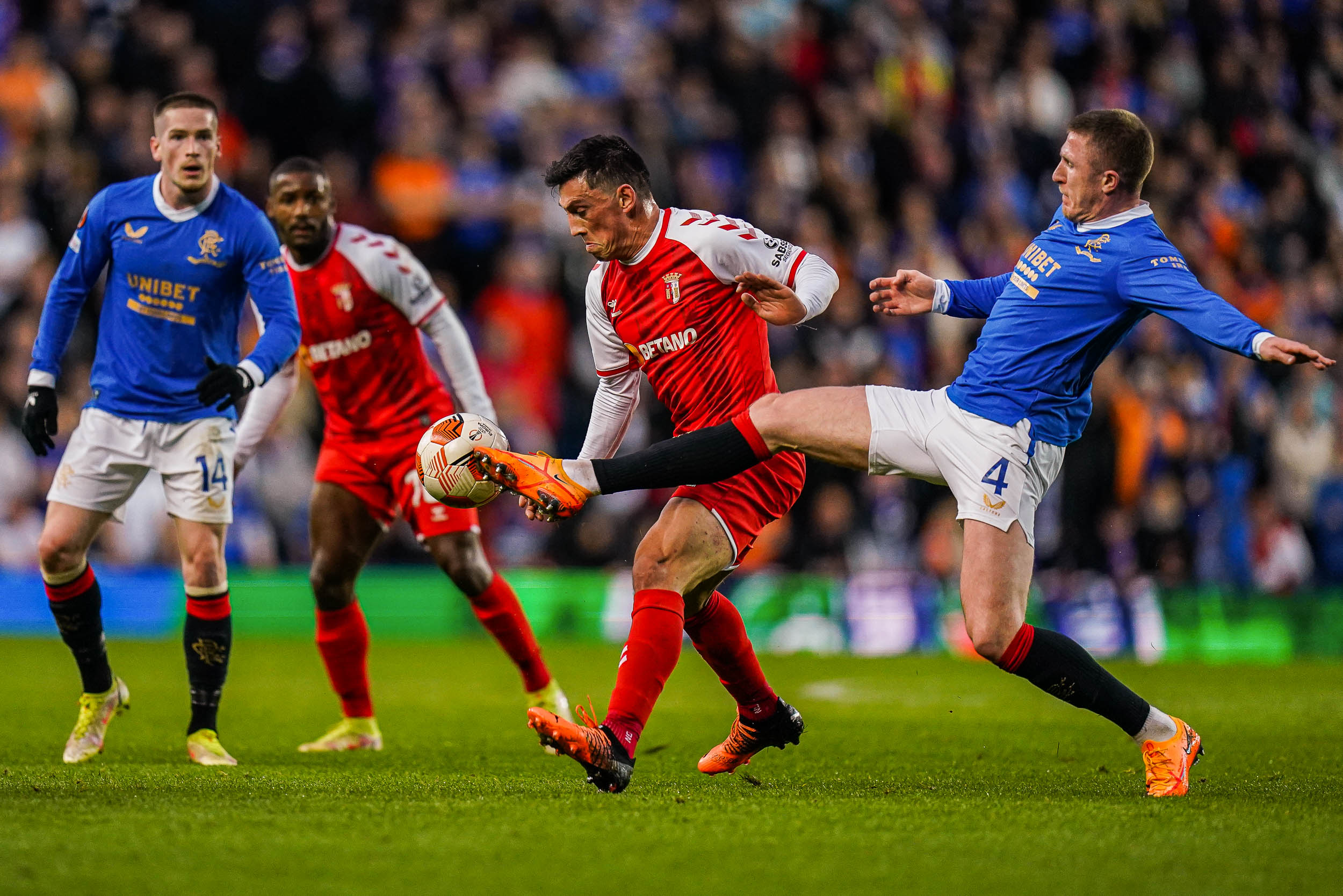 Glasgow Rangers Liga Europa SC Braga SC Braga, que terminou com 9, diz Adeus à Liga Europa; Gverreiros acusaram o ambiente do Ibrox e aos 2′ já perdiam; Tavernier bisou pelo Rangers, Aribo encheu o campo; Carmo levou o jogo para prolongamento mas turma de Carvalhal praticamente não ameaçouAbril 14, 202214Comentários