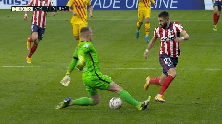 Atlético de Madrid Barcelona La Liga Atlético quebra jejum de 10 anos frente ao Barcelona; Erro colossal de ter Stegen permitiu a Carrasco deixar a equipa de Simeone com mais 9 pontos que os blaugrana; Messi esteve apagado, Félix espalhou técnica mas ficou limitado por ter sido encostado à esquerdaNovembro 21, 202035Comentários