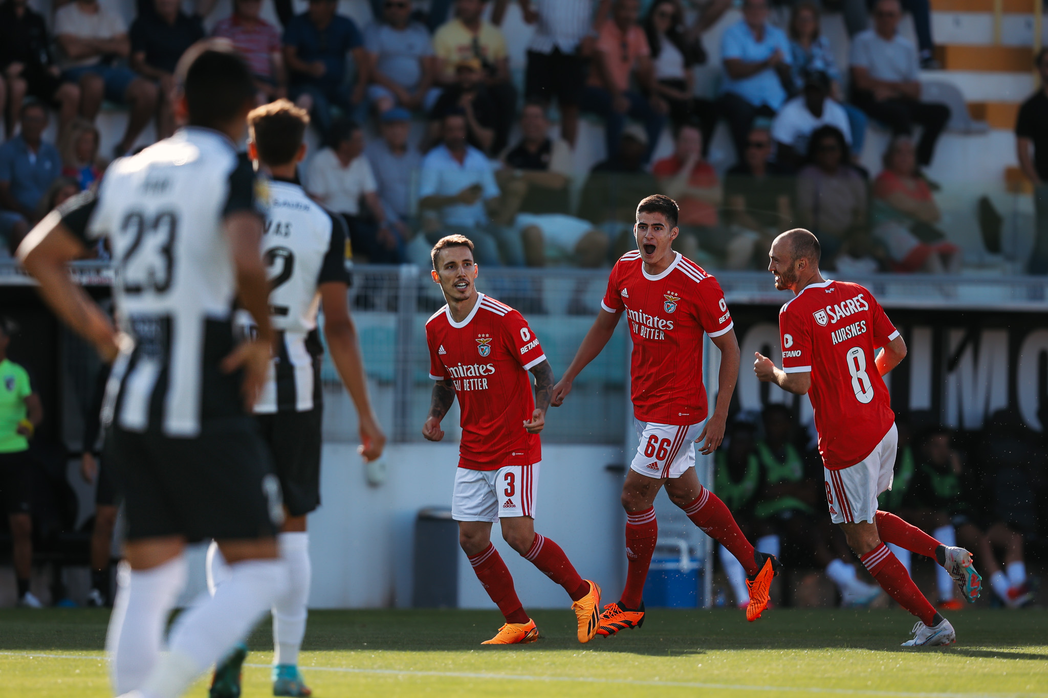 Benfica I Liga Portimonense Benfica goleia em Portimão e pode ser campeão amanhã ou em Alvalade; Águias realizaram uma 1.ª parte de grande nível; Neres e Neves destacaram-se; Ramos voltou aos golos; Grimaldo e Musa também marcaram; Aursnes anulou o 2-3Maio 13, 202376Comentários