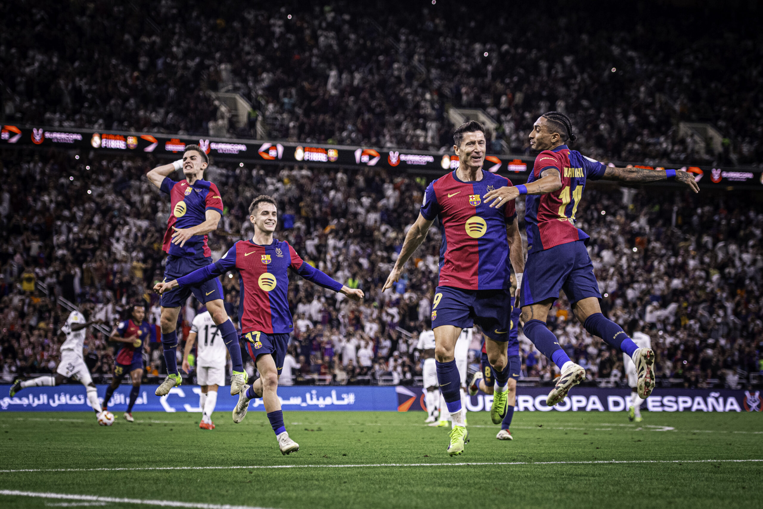 Barcelona Real Madrid Mais uma humilhação! Barcelona deu 5 ao Real Madrid na Supertaça; Raphinha bisou e assistiu; Yamal, Lewandowski e Balde também marcaram; Expulsão de Szczęsny impediu resultado mais expressivoJaneiro 12, 202538Comentários