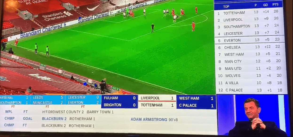 Liverpool Premier League Tottenham Firmino derruba Mourinho no minuto 90; Tottenham, que só teve 24% de posse, fechou-se mas teve lances na 2.ª parte para fazer o 2-1; Arsenal já vai no 6.º jogo seguido sem vencerDezembro 16, 202049Comentários