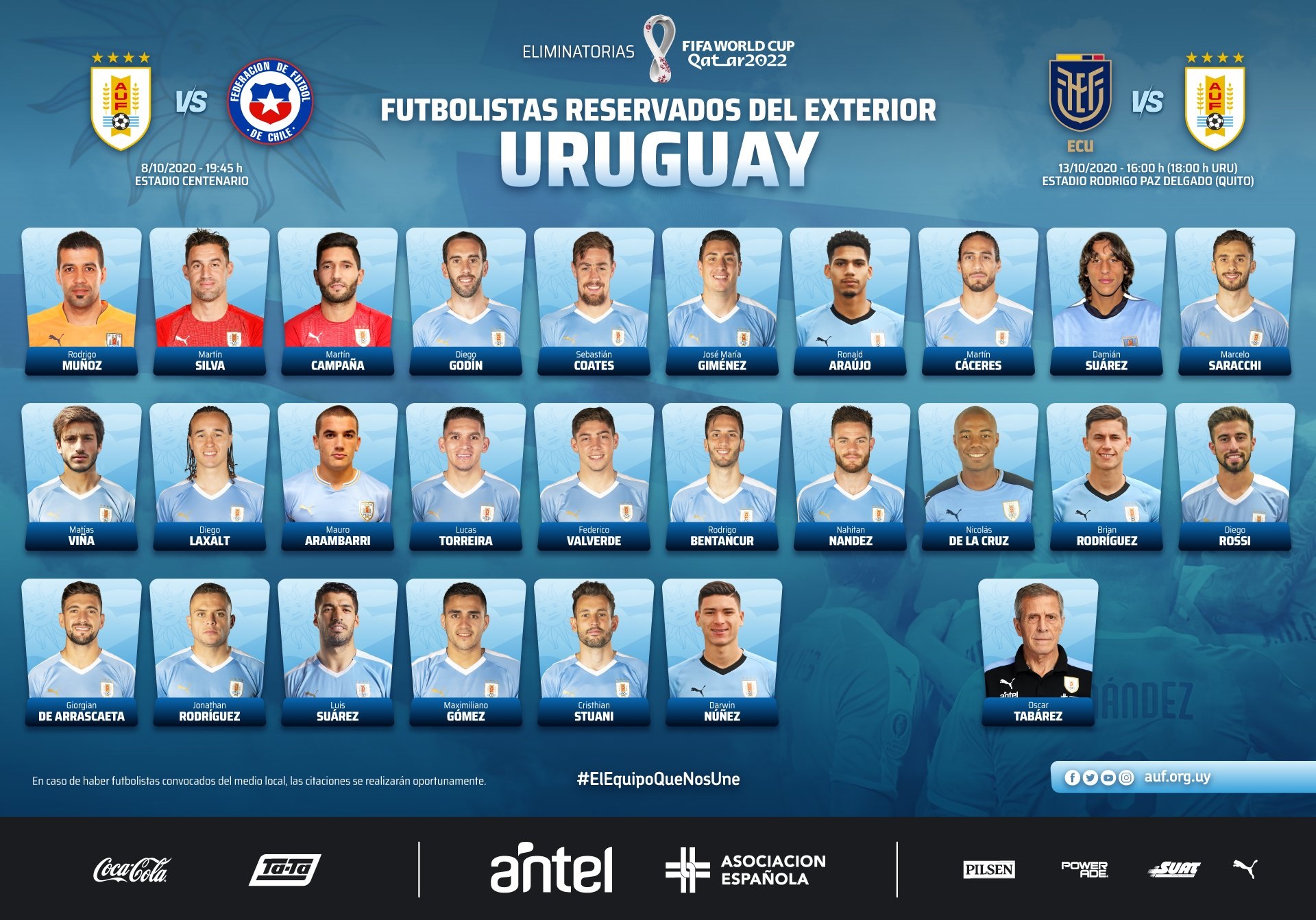 Uruguai VM-Extra Um do Benfica e dois do Sporting na convocatória de TabárezSetembro 17, 20215Comentários