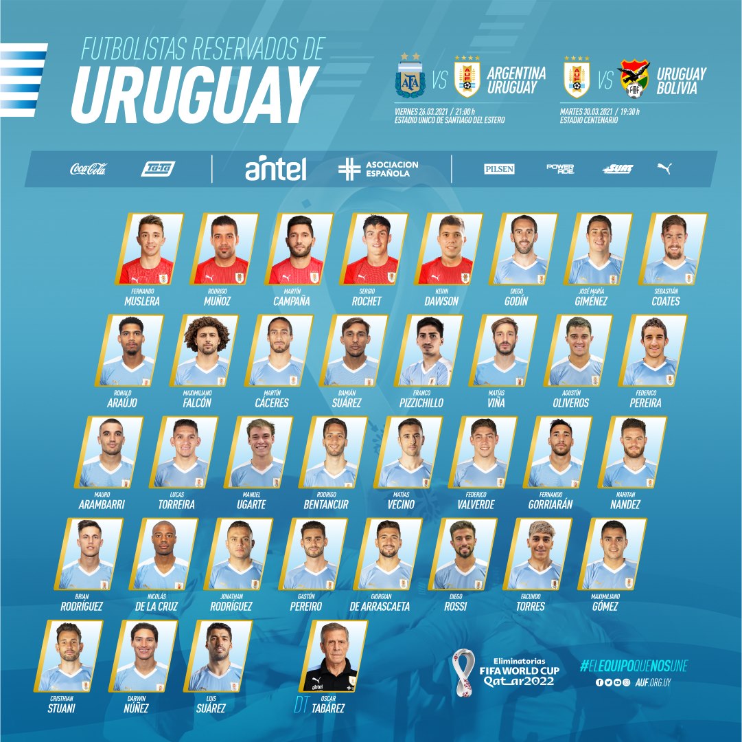 Uruguai VM-Extra Defesa do Sporting e avançado do Benfica nos convocados do UruguaiMaio 15, 20211Comentário