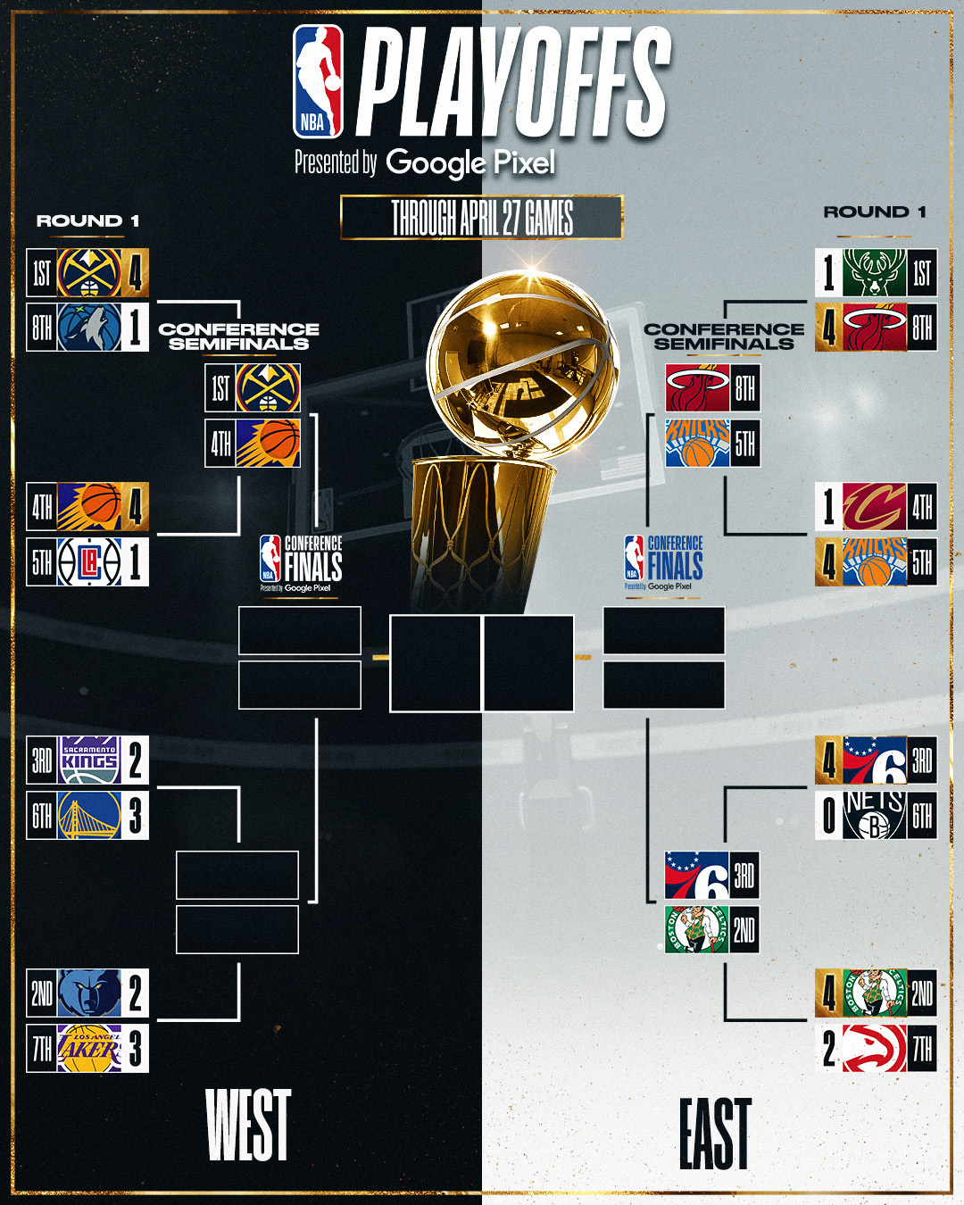 Estava com fé nos Celtic’s a época toda, contudo chego aos playoffs e não estou a gostar da rotação entre Big Al e o Robert Williams. Possivelmente é o medo e o resguardar para os verdadeiros big’s como Embiid, Bam, Jokic e afins. Contudo esta série com os Hawks não me encantou, mas a final do este será já nesta 2ª ronda em 76ers e Celtics