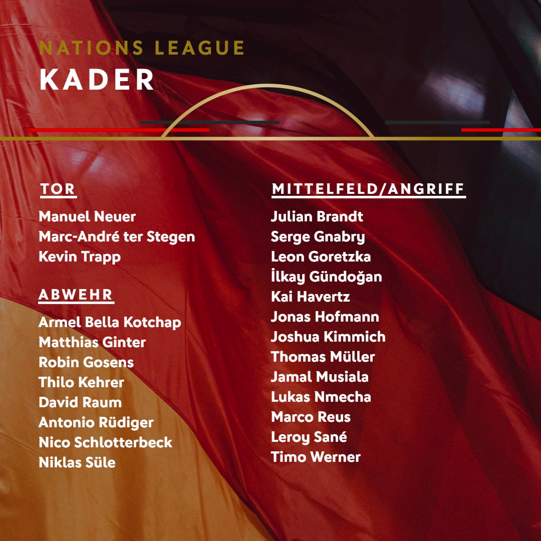 A chamada de Armel Bella-Kotchap, central de 20 anos do Southampton, que curiosamente até nasceu em Paris, é o principal destaque nos convocados da Alemanha para os jogos da Liga das Nações contra a Hungria e Inglaterra. Já Götze, Hummels, Benjamin Henrichs, Lukas Klostermann, Jonathan Tah, Anton Stach e Karim Adeyemi ficaram de fora da lista de Hansi Flick, enquanto Marc-Andre ter Stegen, Christian Ginter e Robin Gosens estão de regresso.