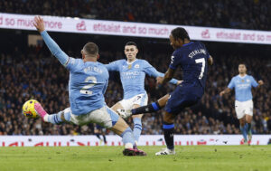 O Manchester City empatou 1-1 com o Chelsea. Num jogo complicado para os Citizens, fruto da boa réplica do conjunto de Mauricio Pochettino, foi um ex-City a abrir o ativo. Aos 42 minutos, Sterling ludibriou a defensiva contrária (e Walker em particular) e fez o 0-1 no Etihad. No 2.º tempo, Ederson evitou o 0-2 e foi Rodri e evitar a derrota da turma de Pep Guardiola, com um golo aos 83′, num remate que ainda desviou em Chalobah, lançado no 2.º tempo. Até final, os campeões carregaram, mas não conseguiram chegar à vitória. Com este empate, o City soma 53 pontos, menos dois que Arsenal e quatro que o líder Liverpool, ainda que com menos um jogo efetuado. Já o Chelsea está em 10.º, com 35 pontos. Nos outros jogos, o Wolves venceu o Tottenham por 2-1 em Londres (bis de João Gomes, reduziu Kulusevski), enquanto o Aston Villa bateu o Fulham, de Marco Silva, por 2-1, com bis de Watkins (reduziu Muniz). Por outro lado, o Arsenal esmagou o Burnley por 5-0 (marcaram Odegaard, Havertz, Trossard, enquanto Saka bisou), ao passo que o Newcastle empatou 2-2 com o Bournemouth. Por fim, o Nottingham, de NES, derrotou o West Ham por 2-0, com golos de Awoniyi e Hudson-Odoi, sendo que Kalvin Phillips foi expulso aos 71 minutos.