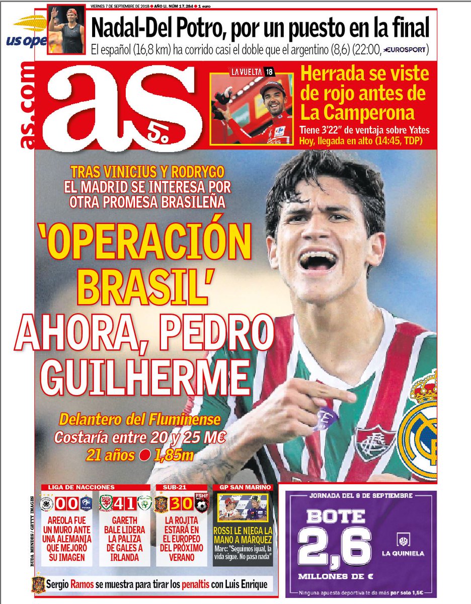 Pedro, o actua melhor melhor marcador do Brasileirão, é o novo alvo do Real Madrid no Brasil. De acordo com o AS, os merengues depois de terem assegurado Vinícius Jr (contratado ao Flamengo) e Rodrygo (garantindo ao Santos para 2019), centraram agora atenções no avançado, de 21 anos, do Fluminense, que esteve na primeira convocatória do Brasil depois do Mundial, apesar de ter sido cortado devido a lesão. O jornal acrescenta que Pedro pode ser transferido por valores entre os 20 e 25 milhões, mesmo tendo uma cláusula de rescisão fixada em 50 milhões de euros. Recorde-se que a sensação brasileira foi um dos muitos avançados que Sousa Cintra tentou contratar para o Sporting na última semana de mercado.