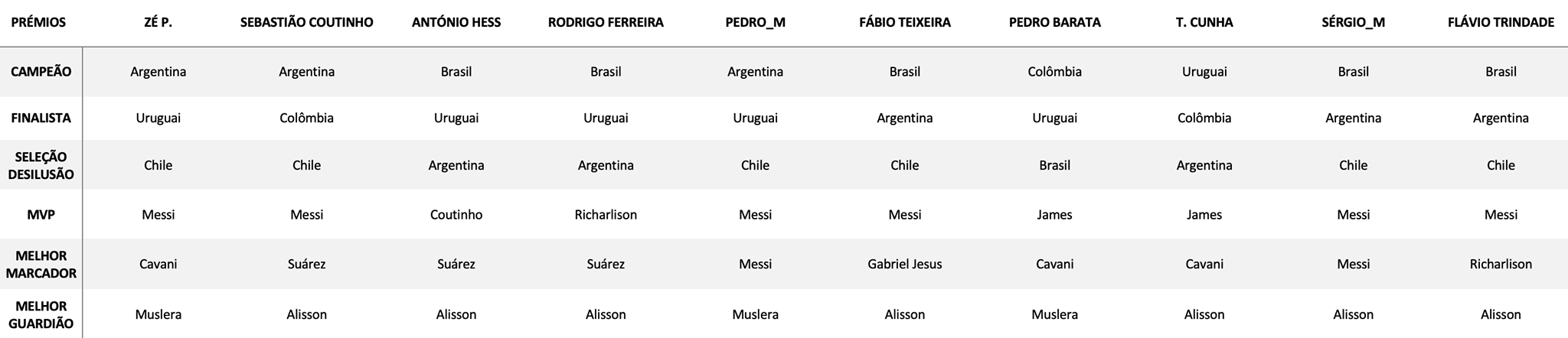 Fico surpreendido por apenas uma pessoa colocar o Uruguai como vencedor.