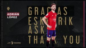 O Osasuna anunciou que Adrián López não vai continuar no clube na próxima época. O avançado, de 33 anos, está em final de contrato e o 11.º classificado da La Liga optou pela sua saída. Recorde-se que Adrián esteve vinculado ao FC Porto entre 2014 e 2019, sendo que na altura custou 11 ME aos azuis e brancos por apenas 60% do passe.