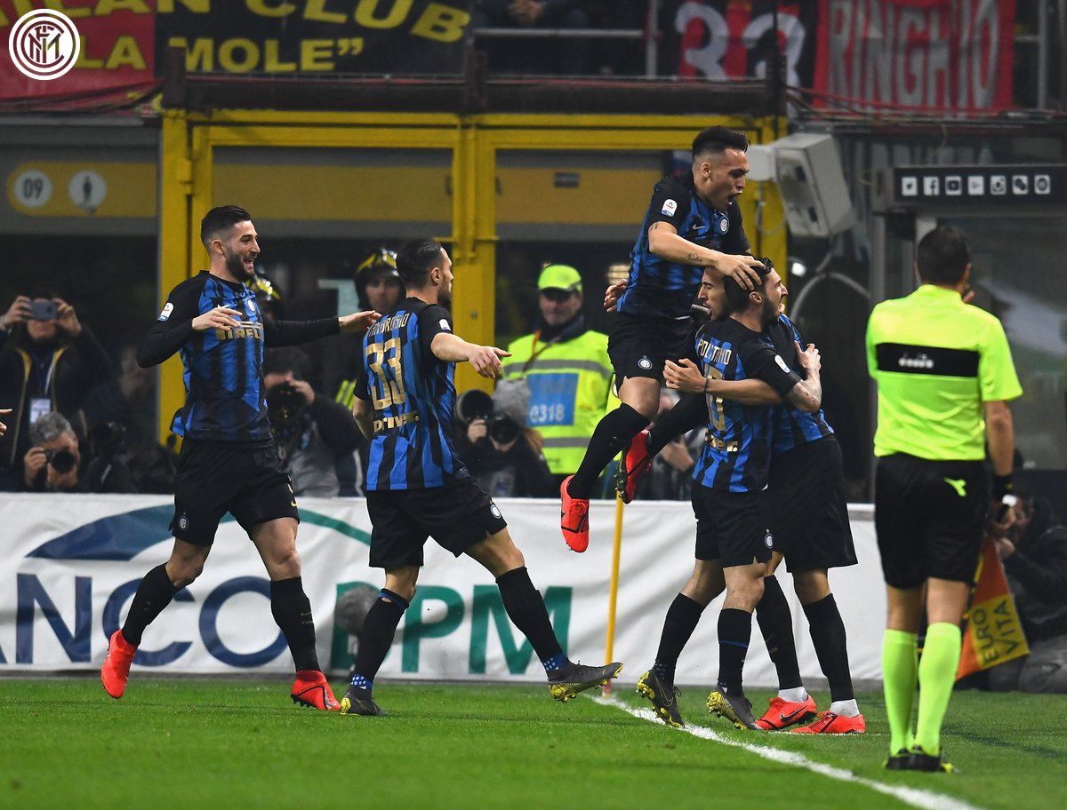 O Inter derrotou, fora, o Milan por 3-2, impondo-se assim no dérbi de Milão e ultrapassando o rival da cidade na tabela da Série A (os Nerazzurri passam ao 3.º lugar com 53 pontos, mais 2 que os Rossoneri). Num embate sem presença portuguesa (nem Cédric nem João Mário – fora dos convocados – foram utilizados), a equipa de Spalletti deu um pontapé na crise (só havia vencido um dos derradeiros 5 jogos, sendo que há 3 dias foi eliminada da Liga Europa) e terminou com uma sequência de 10 partidas seguidas sem perder do conjunto de Gattuso. Vecino, talvez o melhor em campo, inaugurou o marcador logo aos 3′ e abriu caminho a um 1.º tempo de grande superioridade do Inter. Na 2.ª parte a partida foi frenética, com 4 golos em 20 minutos, mas a vitória foi mesmo dos Nerazzurri.