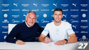 Rúben Dias renovou contrato com o Manchester City até 2027. O central português chegou ao Etihad na época passada, a troco de 68 milhões de euros, e teve impacto imediato, conquistando o campeonato e a Taça da Liga. Na época passada, o central de 24 anos efetuou 50 jogos e apontou um golo, sendo que esta temporada leva já quatro partidas realizadas. Após a assinatura do novo contrato, o ex-Benfica mostrou-se satisfeito com a renovação: “Estou muito feliz por assinar o novo acordo. Aproveitei cada minuto do meu tempo no City desde que cheguei no ano passado. Jogar aqui superou todas as minhas expectativas e é um prazer fazer parte de uma equipa incrível. Também gostaria de agradecer ao Pep [Guardiola] e à comissão técnica pela maneira como me ajudaram a desenvolver como jogador e por continuarem a incentivar-me a ser cada vez melhor”.