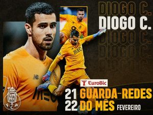 Diogo Costa conquistou o EuroBic Guarda-redes do Mês da Liga Portugal bwin, referente a fevereiro, com um total de 35% dos votos dos treinadores principais da competição. O número 99 do FC Porto repete, assim, a distinção obtida nos passados meses de setembro, dezembro e janeiro, fazendo o pleno no ano de 2022 e sendo premiado pela terceira vez consecutiva. Adán (Sporting CP), com 13% dos votos, e Matheus (SC Braga), que teve 10% dos votos recolhidos, completaram o pódio.