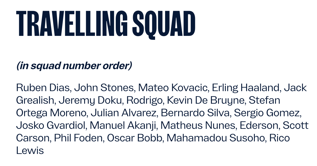 Acredito que alinhem com Ortega, Akanji, Rúben Dias, Gvardiol, Stones, Rodri, Bernardo, de Bruyne, Kovacic, Foden, Haaland.