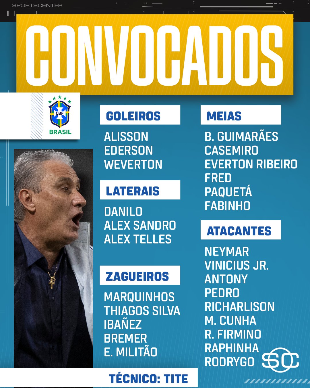 Neymar, Vinicius, rodrygo, Raphinha, Antony…. Tanta qualidade para as linhas… E ainda Everton ribeiro e Richarlison podem lá jogar.