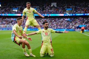 A Espanha arrebatou a medalha de ouro no torneio olímpico de futebol ao bater a França na final, por 5-3. Millot até adiantou os gauleses, mas a La Roja aos 28′ já vencia por 3-1 com bis de Fermín e um golo de Baena. No 2.º tempo a França carregou e forçou o prolongamento por Akliouche e Mateta, que fez o 3-3 de penálti já nos descontos. A turma de Henry parecia melhor mas do outro lado apareceu Camello, que assumiu o papel de herói ao bisar.