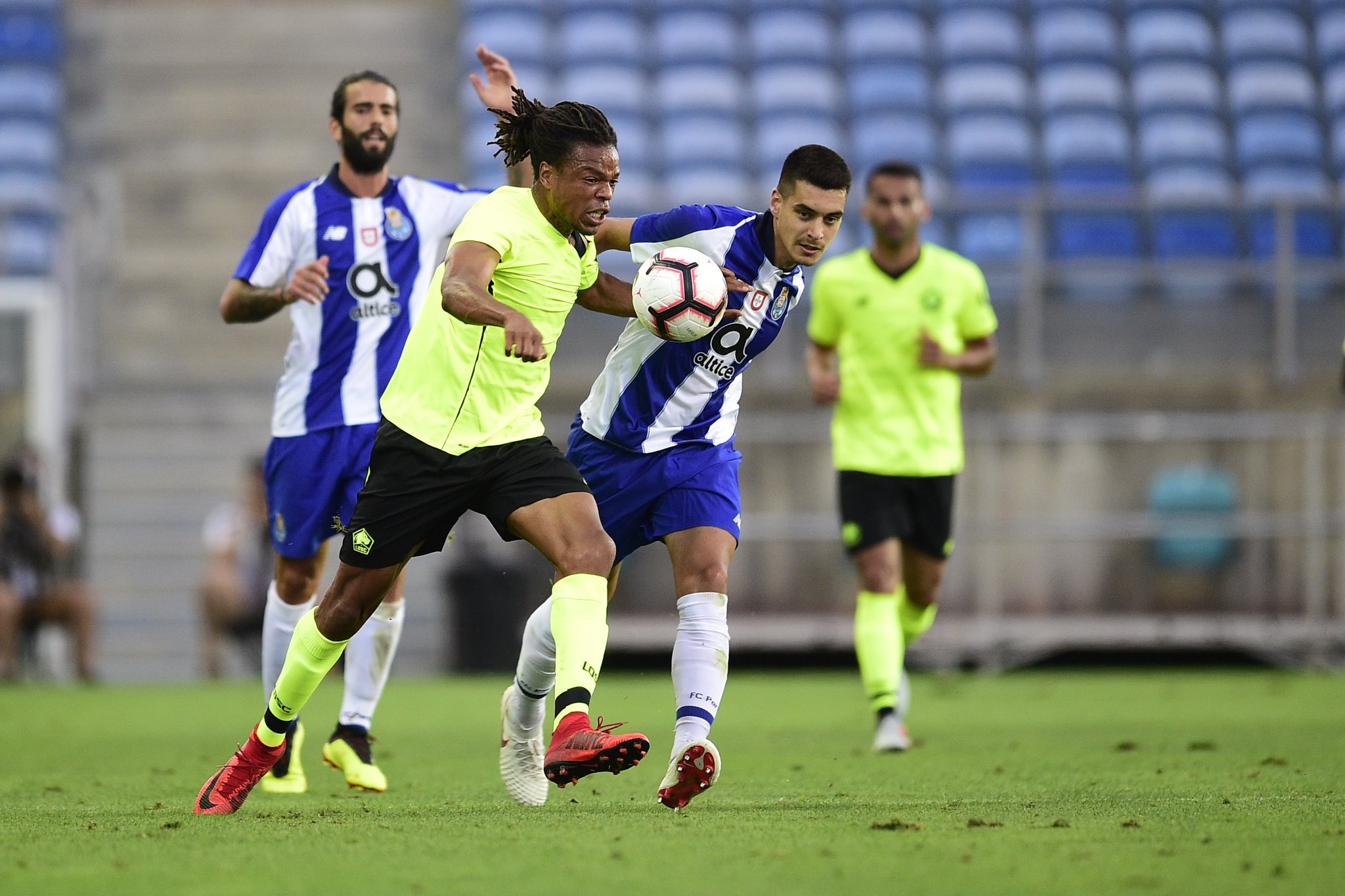 FC Porto – Mais um teste que deve ter deixado Sérgio Conceição a pedir reforços. Os dragões, frente a um conjunto muito jovem, denotaram dificuldades em instalar o seu jogo no meio-campo adversário, vendo-se obrigados a lançar demasiadas vezes as bolas longas, e sofreram com os ataques rápidos de Bamba, Pepé e Remy. Individualmente, Fabiano sai sem culpas nos golos sofridos, enquanto que no quarteto defensivo os laterais Chidozie (não deu profundidade) e Alex Telles sofreram defensivamente, e os centrais Felipe e Diogo Leite sentiram algumas dificuldades com o jogo de apoios do avançado contrário. No meio-campo Sérgio Oliveira realizou uma partida desastrada, com faltas desnecessárias e perdas de bola mesmo com espaço permitido, já Óliver destacou-se pela dinâmica que ofereceu à organização ofensiva dos dragões. Paulinho foi opção de início à direita, mas esteve bastante apagado, mas Brahimi voltou a ser uma das melhores unidades, criando como só ele sabe no plantel portista. Nos avançados, atuações díspares também, Marega deu muito trabalho com as suas arrancadas, no entanto André Pereira – depois da boa pré-época que tem feito – perdeu a maioria dos duelos com a defensiva contrária (Soumaoro esteve em destaque). Dos elementos que foram lançados no decorrer do jogo, Waris voltou a ter nota negativa e João Pedro e Hernâni alternaram entre bons e maus momentos. Destaque ainda para o facto de Aboubakar não ter sido utilizado.