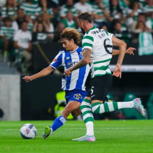 O FC Porto levou a melhor no Clássico ao bater o Sporting, em Alvalade, por 2-1. Luuk de Jong e William Gomes (golaço) resolveram a favor dos Dragões, sendo que o melhor que os Leões conseguiram foi reduzir através de um auto-golo de Nehuen Pérez. Quanto ao jogo, começou praticamente com uma grande oportunidade para o FC Porto, com Borja Sainz a atirar de bicicleta ao poste logo aos 16 segundos. Luuk de Jong também dispôs de uma boa chance para marcar, mas o Sporting equilibrou e Pote teve também duas grandes oportunidades para marcar, uma delas flagrante (contra-ataque de 3×1). A 1.ª parte terminou com maior ascendente da turma de Farioli, que passou a recuperar a bola mais alto e mais rápido e viu Froholdt ficar perto do golo em mais duas ocasiões. Após o intervalo, foi o Sporting quem entrou melhor e teve várias aproximações perigosas, mas contra a corrente do jogo o FC Porto inaugurou o marcador, num lance que William Gomes descobre Alberto na área e este cruza para Luuk de Jong encostar. Logo a seguir, os Dragões aproveitaram o momentum e chegaram rapidamente ao 2-0, num remate fantástico de William Gomes. Após alguns momentos de desconcentração, a equipa de Rui Borges voltou a mandar no jogo e começou a jogar mais perto da área de Diogo Costa, conseguindo reduzir num auto-golo de Nehuen Pérez (grande abertura de Inácio e cruzamento de Mangas) e depois criar várias chances para o 2-2, nomeadamente dois remates de Luis Suárez travados por Diogo Costa, mas o resultado já não se alterou e o técnico leonino sofre a 1.ª derrota ao serviço dos Leões para o campeonato, enquanto a turma de Farioli permanece 100% vitoriosa na época.