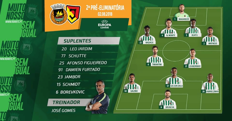 Rio Ave – Agosto acabou de começar e o conjunto de José Gomes já se viu arredado de um objectivo importante para esta campanha, não conseguindo chegar à fase de grupos da Liga Europa pela segunda vez na história do emblema. O Rio Ave é eliminado por um adversário muito limitado, que defendeu muito mal e que tirou partido da desastrosa abordagem defensiva da equipa portuguesa, quer ao nível da ocupação de espaços quer no que se refere à agressividade defensiva (muitos lances em que os defesas ficaram a “defender com os olhos”). No plano ofensivo houve boa dinâmica e capacidade de criar oportunidades e apontar 4 tentos, mas fica a clara sensação de que o Rio Ave é eliminado por culpa própria, por uma incapacidade em ser regular e concentrado em todo o encontro, isto para uma equipa que enfrenta 2018-2019 altamente renovada (com treinador novo e só com dois titulares de 2017-2018 no plantel, assumindo diversos suplentes da campanha transacta um lugar na equipa inicial). Individualmente, Matheus Reis foi muito frágil a defender, controlando mal o espaço nas costas e não subindo rapidamente no lance que deu o 2-2, colocando o jogador polaco em jogo (Buatu, que há uma semana havia comprometido, também deu pouca segurança). Mais na frente, Gabrielzinho esteve muito desligado do jogo e Bruno Moreira, apesar do caudal ofensivo do Rio Ave, nunca conseguiu superiorizar-se à defesa rival, sendo dois os nomes em maior destaque na equipa: Galeno e Gelson Dala. O primeiro foi o grande catalisador da reacção dos de Vila do Conde, assumindo o jogo, pegando na bola para muitas acções de drible e condução que desequilibraram o último reduto rival (ganhou muitas faltas), apontando dois golos, fazendo uma assistência e deixando excelentes indicações para o que pode fazer esta época; o segundo, actuando entre-linhas, movimentou-se com inteligência, assistiu muito bem Galeno para o 1-1, marcou o 3-2 e ainda desperdiçou um golo num lance em que fintou vários polacos, mostrando que também pode ser uma arma importante para José Gomes.