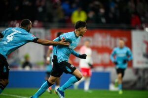 O Bayer Leverkusen venceu por 3-2 no terreno do RB Leipzig e atingiu os 48 pontos, contra 41 do Bayern, que tem dois jogos em atraso na Bundesliga. Xavi Simons abriu o ativo aos 7 minutos; Openda marcou e chegou aos 12 golos no campeonato, mas Tella, Tah e Piero Hincapié, aos 90’+1, após canto batido por Grimaldo, carimbaram o triunfo da turma de Xabi Alonso. Nos outros jogos, o Dortmund esmagou em Colónia (4-0), com um bis de Malen e golos de Fullkrug e Moukoko, sendo que Sancho foi titular e saiu aos 66; o Eintracht Frankfurt empatou 2-2 com o Darmstadt, que marcou aos 90’+5; o Wolfsburgo empatou 1-1 com o Heidenheim (Cerny e Moritz Jenz); e o Estugarda perdeu com surpresa por 1-0 no terreno do Bochum (Matus Bero). Já o Friburgo bateu o Hoffenheim por 3-2.