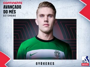 Gyökeres é o vencedor do prémio Continente Avançado do Mês, referente a setembro, na Liga Portugal Betclic. O internacional sueco do Sporting fez três golos nos três jogos em que participou na competição durante o período em avaliação, arrecadando 25,93 por cento dos votos dos treinadores da competição. Bozeník (Boavista FC), com 17,78%, e Banza (SC Braga), que reuniu 12,59% dos votos, completaram o pódio.