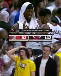Os Heat conseguiram a vitória mais expressiva da sua história, em termos pontuais, ao baterem os Blazers por 142-82. Miami ao intervalo já vencia por mais de 30, tendo Thomas Bryant aproveitado para somar 26 pontos. Adebayo juntou 21 a 12 ressaltos e 9 assistências, enquanto Butler não passou dos 8. Já do lado de Portland o destaque vai para o rookie Scoot Henderson, que terminou com um menos 58, a pior marca na história da NBA.