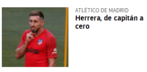 O jornal AS dá hoje grande destaque ao facto de Hector Herrera ser o único reforço do Atlético Madrid, além de Saponjic, que ainda não teve minutos. Com o título: “De capitão a zero”, a publicação destaca que o mexicano chegou a Madrid depois de seis anos no FC Porto onde era titular e capitão, tal como na seleção do México, mas que Simeone nem na pré-época mostrou confiança nas suas capacidades, só o tendo metido com a equipa suplente. No lado oposto a Herrera está João Félix, que leva 156 minutos. Já o ex-FC Porto Felipe, também ainda só fez um minuto.