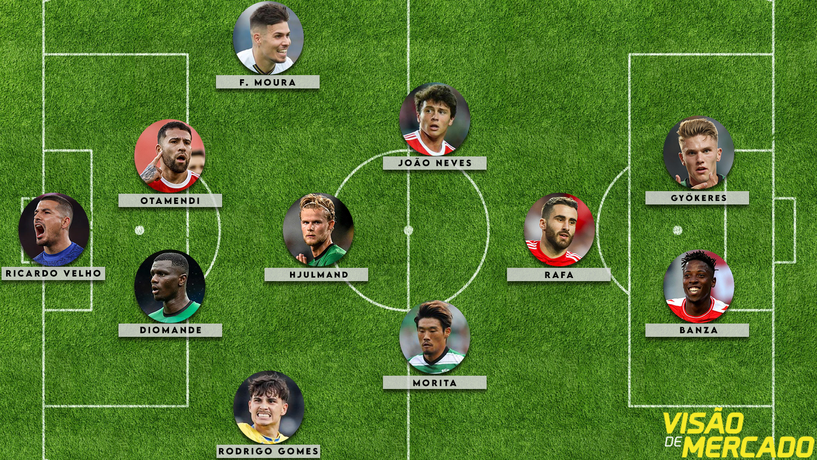 Melhor XI: Trubin, Pedro Malheiro, Otamendi, Gonçalo Inácio, Francisco Moura; Hjulmand, Morita, João Neves; Rafa Mujica, Cristo Gonzalez e Gyökeres.